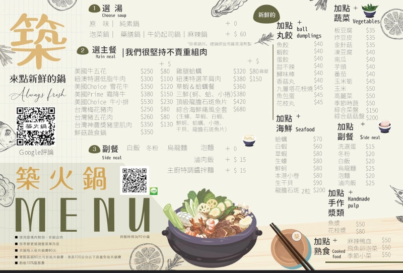 築火鍋 菜單&優惠